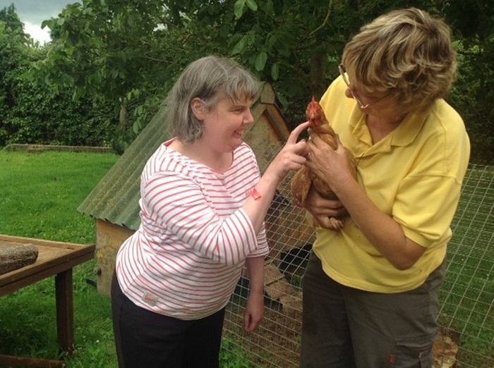 Claire the ducklings and chickens – looks like she